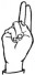 На ћирилици написано РАДОВАН МЕЧАНИН састоји се из 14 слова [?]. Исписано ћириличном једноручном азбуком за глувонеме: